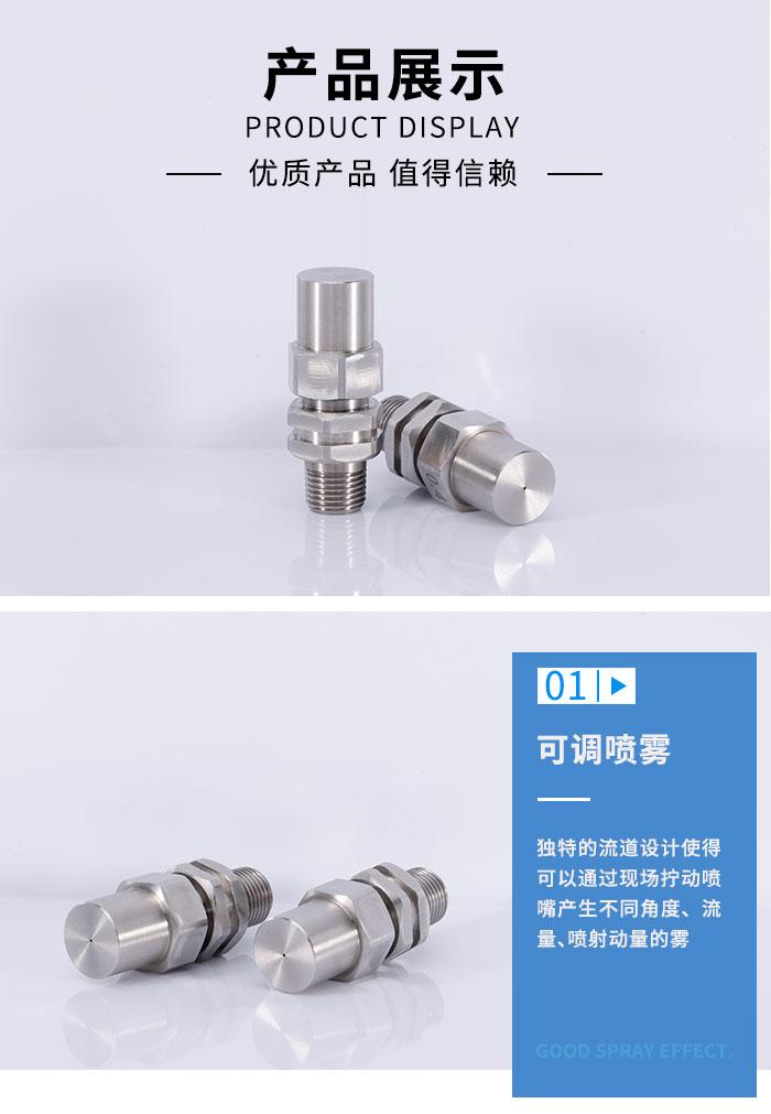 材質(zhì):不銹鋼 型號AAK0.6 安裝型式:外螺紋連接 工作溫度:常溫 工作壓力:3-7Mpa 介質(zhì):水 適用范圍:噴霧除塵,降溫,