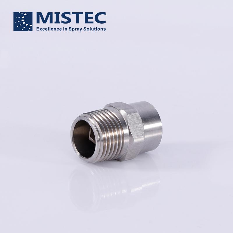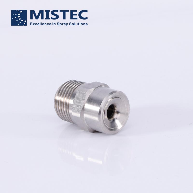 1.噴霧形狀為實心錐形,流量分布均等的的廣角實心圓錐形噴嘴。噴角為120°,因此比一般的噴嘴的噴霧面積廣。