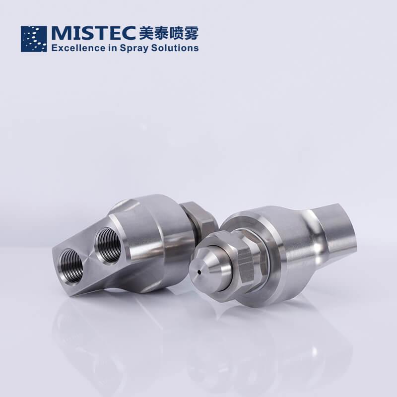 1、Mistec虹吸式空氣霧化油嘴是一款能在低壓,低耗條件下產(chǎn)生非常好的霧化效果的空氣霧化油嘴。 2、利用管道內(nèi)的壓縮空氣的旋流來將油滴沖擊霧化 3、能在低壓低耗氣量下產(chǎn)生粒徑微小的油霧 4、可以通過控制空氣流量和壓力來調(diào)整噴霧的流量,角度,顆粒度的大小