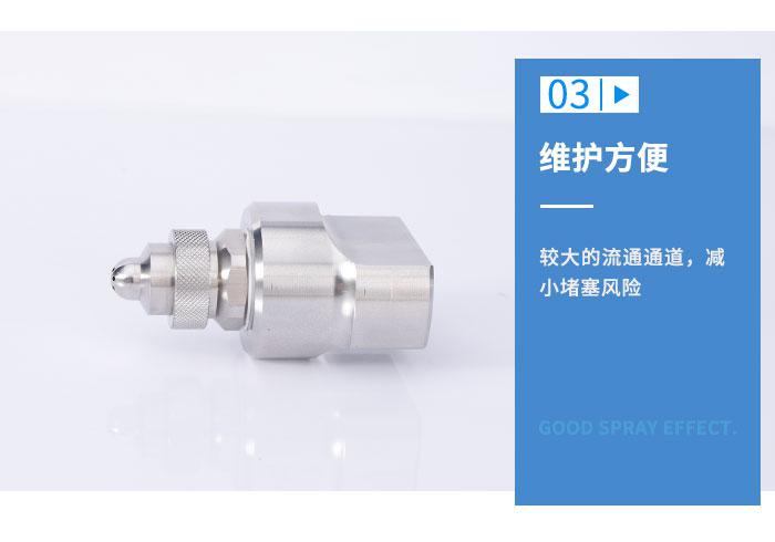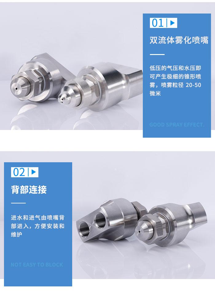 安裝型式:內(nèi)螺紋連接 工作溫度:常溫 工作壓力氣:3bar,水:3bar 介質(zhì):水,壓縮空氣 適用范圍:干霧抑塵,加濕,消毒,噴涂 噴霧粒徑:20-50微米